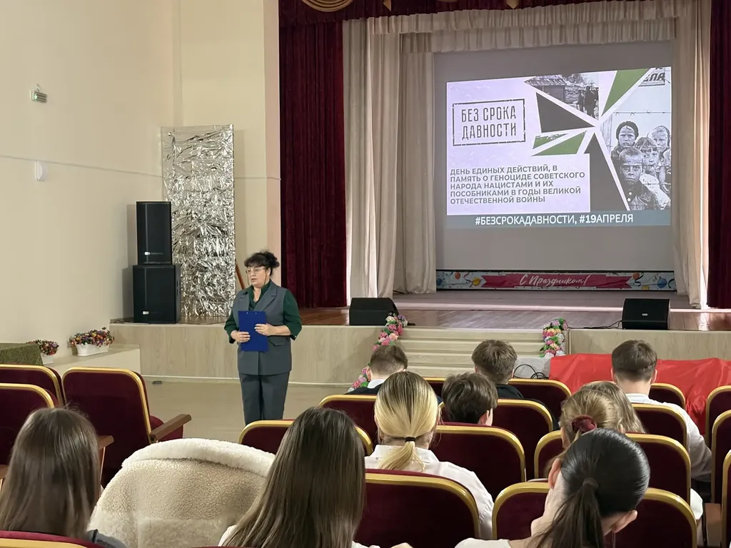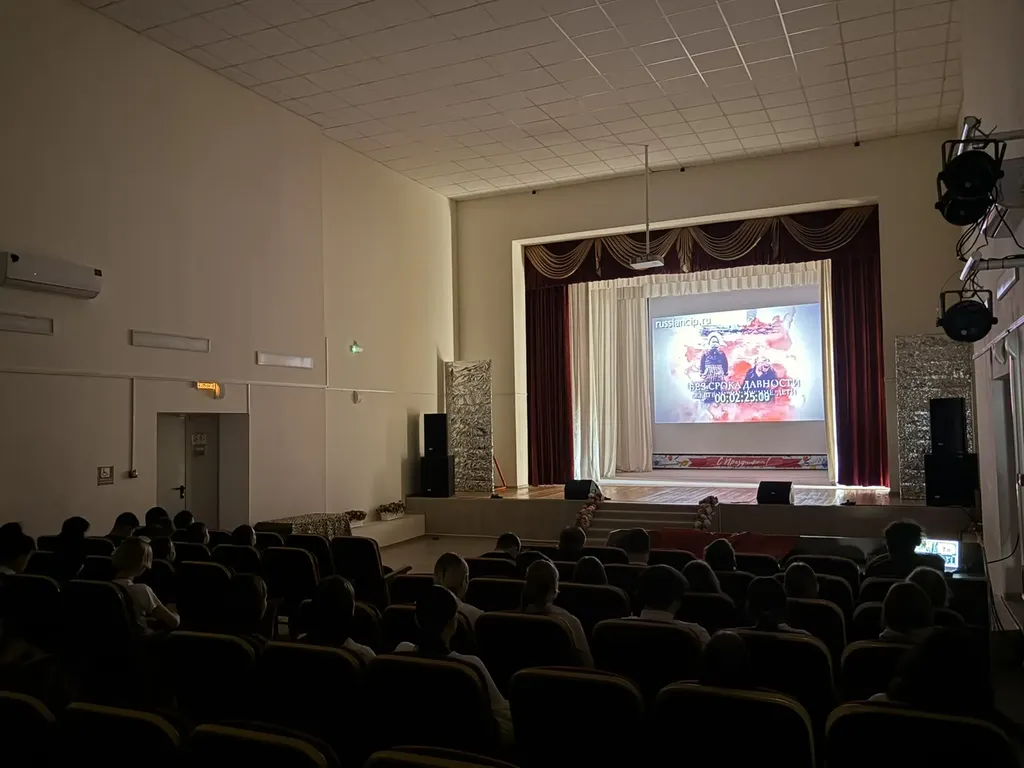 Перед началом кинопоказа ведущий познакомил школьников с историческими фактами, связанными с преступлениями против мирного населения, подчеркнув важность сохранения памяти о трагедии войны и подвиге советского народа.